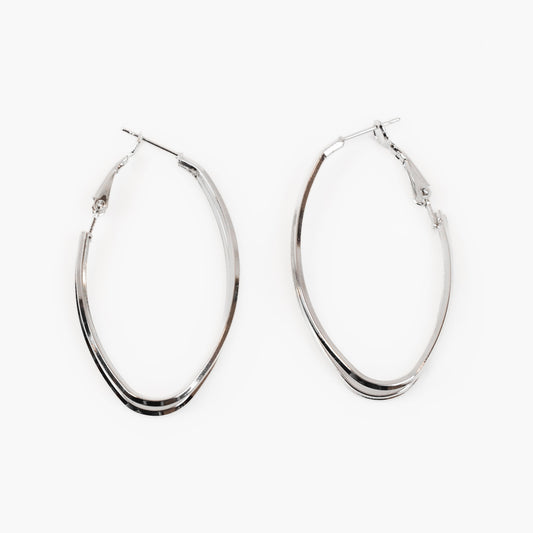 Cercei verigă ovali dubli cu textura delicată - Argintiu