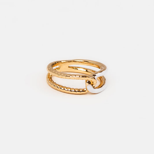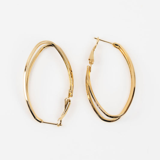 Cercei verigă ovali dubli cu textura delicată - Auriu