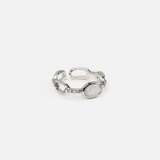 Inel reglabil în formă de lanț cu piatră ochi de pisică - Argintiu