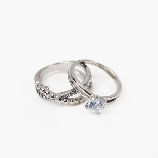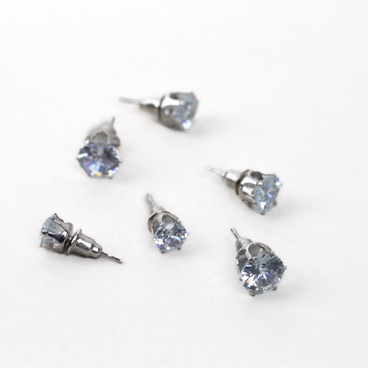 Set cercei mici cu pietre strălucitoare rotunde, 7-9mm, 3 perechi - Argintiu, baza argintiu