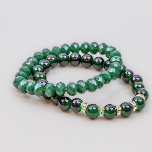 Set brățari elastice cu perle, pietre și ștrasuri, 2 buc - Verde