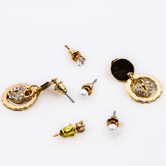 Set cercei cu pandantiv în formă de inimă și pietre, 3 perechi - Auriu