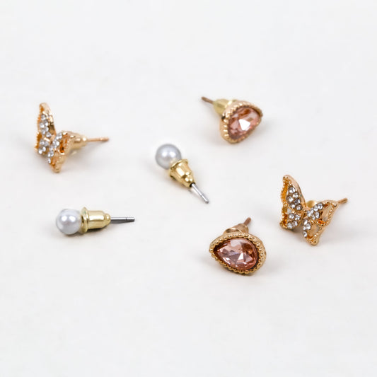 Set cercei mici cu forme de fluture și lacrimă, 3 perechi - Melba Mix