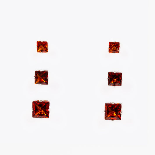 Set cercei mici cu pietre pătrate, 3 perechi - Portocaliu, Maro
