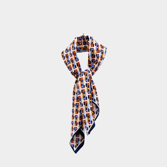 Eșarfă damă din satin, imprimeu cu forme geometrice, 65 x 65 cm - Multicolor
