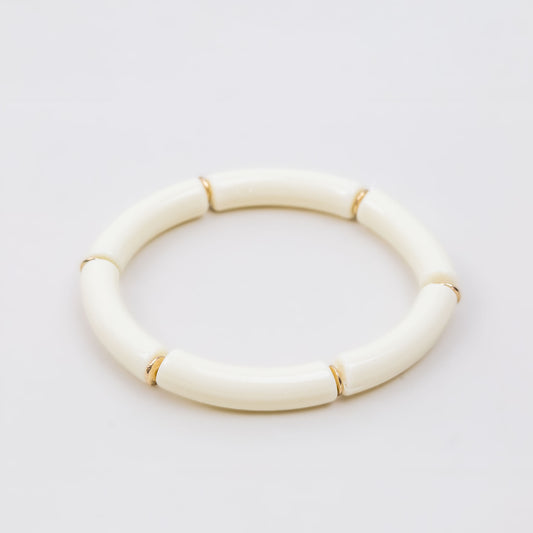 Brățară elastică cu pietre sidefate și charm arborele vieții - Alb