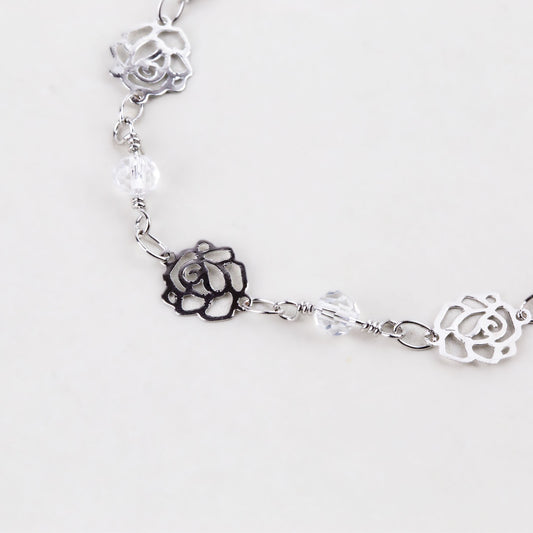 Brățară reglabilă cu charm-uri în formă de trandafir și pietre mici - Argintiu