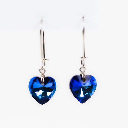 Cercei lungi cu piatră strălucitoare în formă de inimă - Albastru