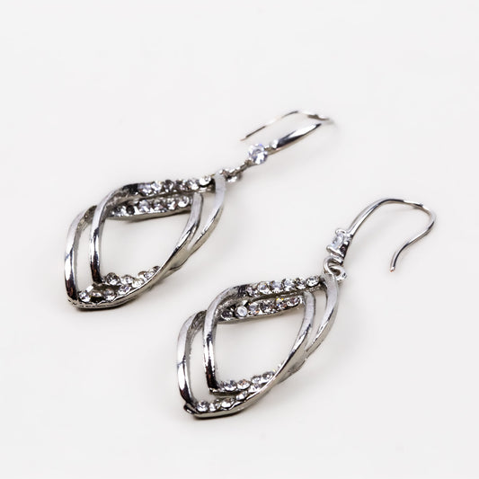 Cercei cu romburi ondulate și ștrasuri - Argintiu