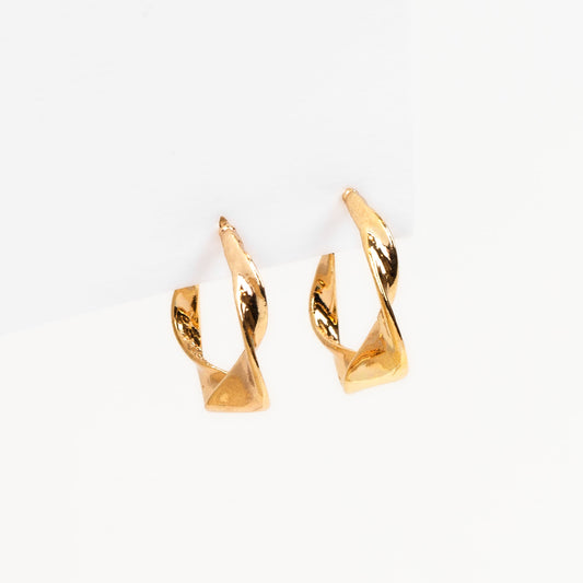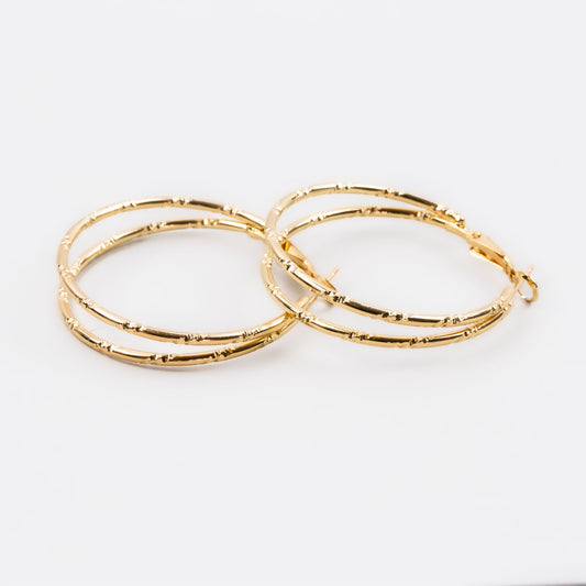 Cercei rotunzi dubli cu textură crestată - Auriu