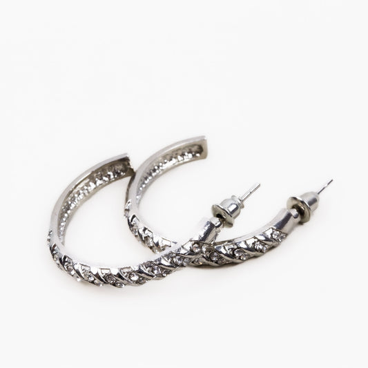 Cercei rotunzi cu ștrasuri discrete - Argintiu versatil