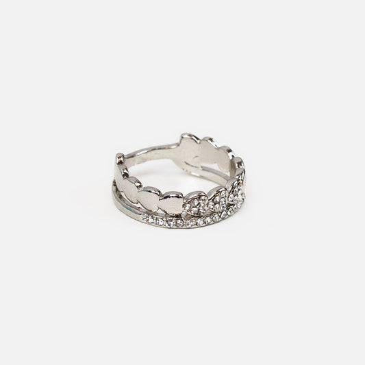 Inel dublu cu forme de inimi și ștrasuri - Argintiu