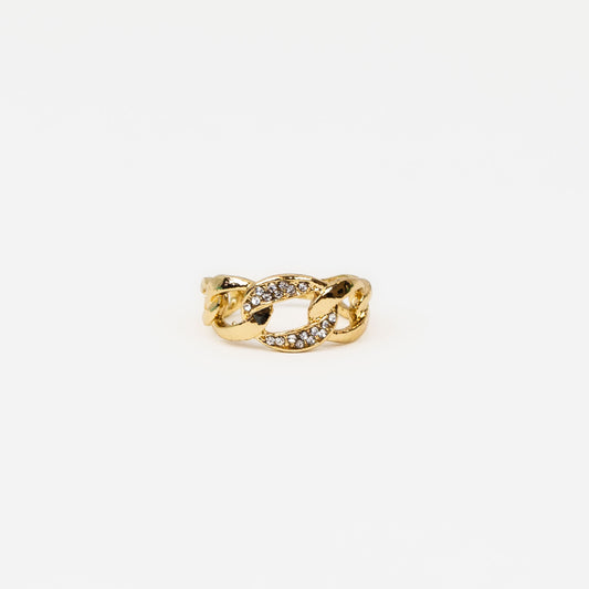 Inel lat în formă de lanț cu ștrasuri - Auriu