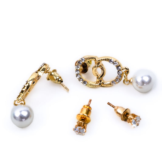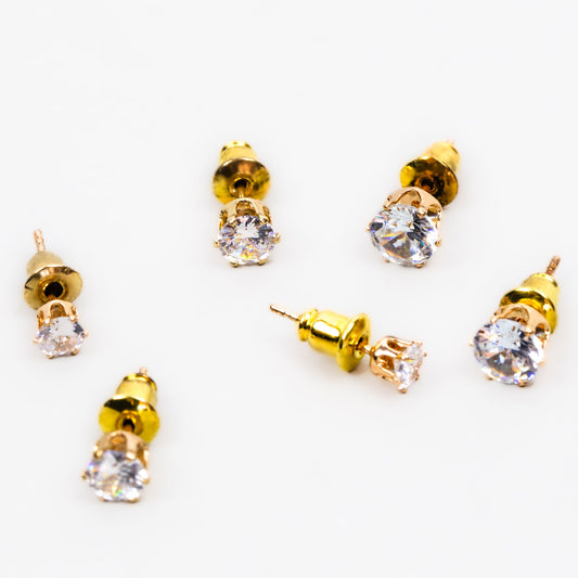 Set cercei mici cu pietre strălucitoare rotunde, 5-7mm, 3 perechi - Argintiu, baza auriu