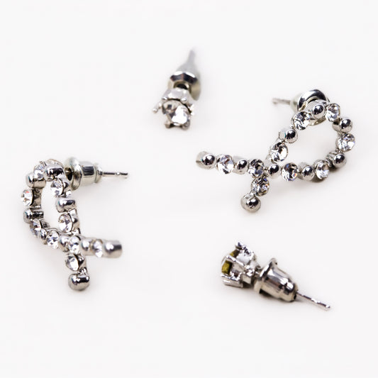 Set cercei în formă de panglică cu pietre strălucitoare, 2 perechi - Argintiu