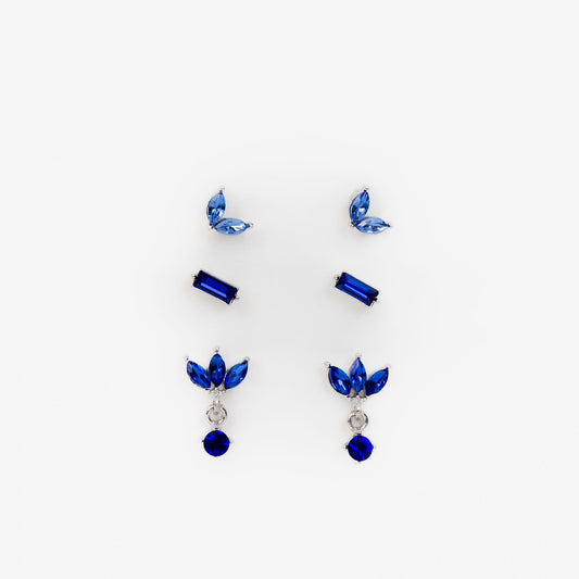 Set cercei mici cu forme de amuletă și pietre, 3 perechi - Albastru