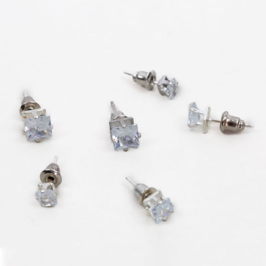 Set cercei mici cu pietre pătrate, 3 perechi - Argintiu, baza argintiu