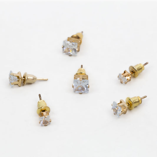 Set cercei mici cu pietre pătrate, 3 perechi - Argintiu, baza auriu