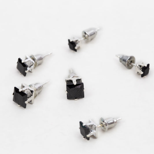 Set cercei mici cu pietre pătrate, 3 perechi - Negru