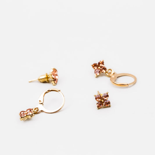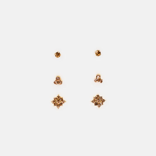 Set cercei mici cu pietre stralucitoare steaua nordului, 3 perechi - Șampanie