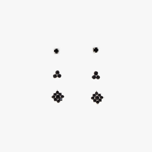 Set cercei mici cu pietre stralucitoare steaua nordului, 3 perechi - Negru
