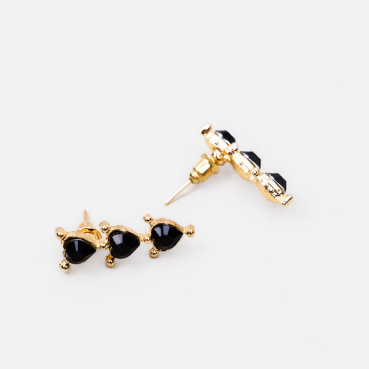 Cercei mici cu pietre strălucitoare delicate, set 2 perechi - Negru