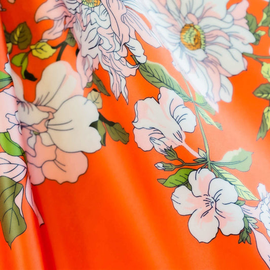 Eșarfă damă din satin cu imprimeu floral, 55 x 55 cm - Roșu
