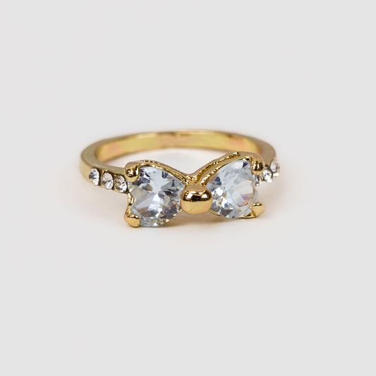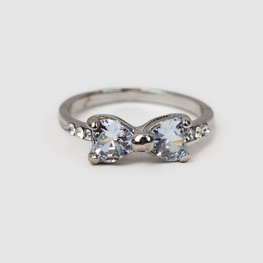 Inel cu fundiță delicată și pietre - Argintiu, Auriu