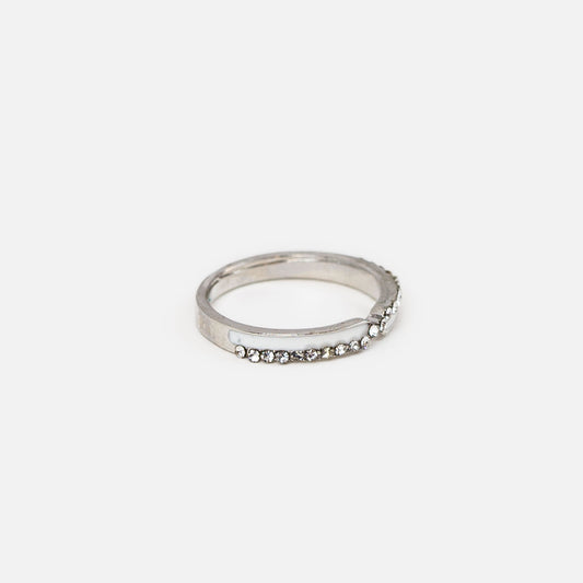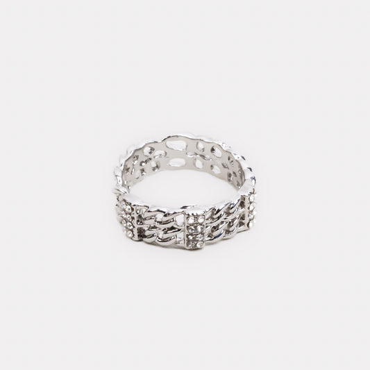 Inel lat în formă de lanț cu ștrasuri - Argintiu