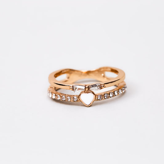 Inel dublu cu formă de inimă și ștrasuri mici - Auriu