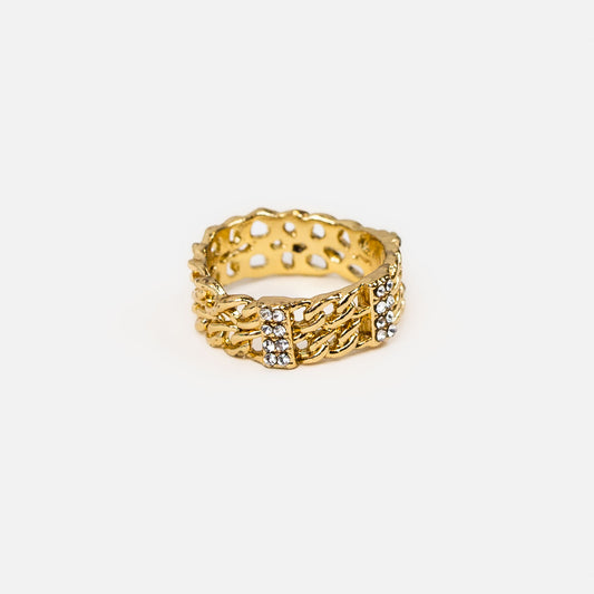 Inel dublu în formă de lanțuri cu ștrasuri - Auriu