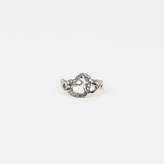 Inel dublu cu formă de inimă și ștrasuri mici - Argintiu