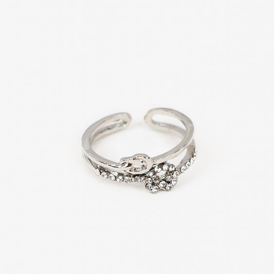 Inel reglabil dublu cu noduri și ștrasuri - Argintiu