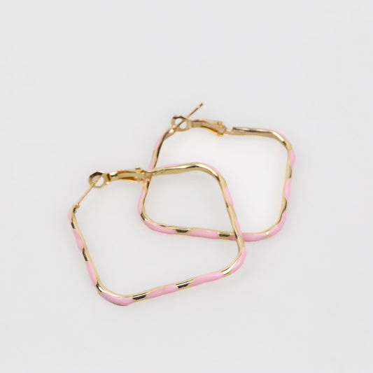 Cercei pătrați cu piatră mare și ștrasuri strălucitoare - Roz