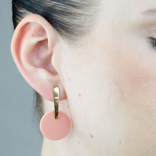 Cercei cu accent auriu și bănuț colorat - Roz Pudrat
