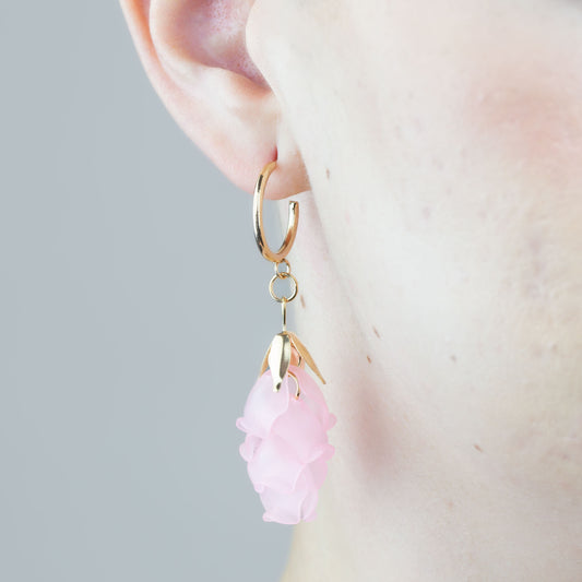 Cercei extra lungi și ușori cu petale delicate din material textil - Roz