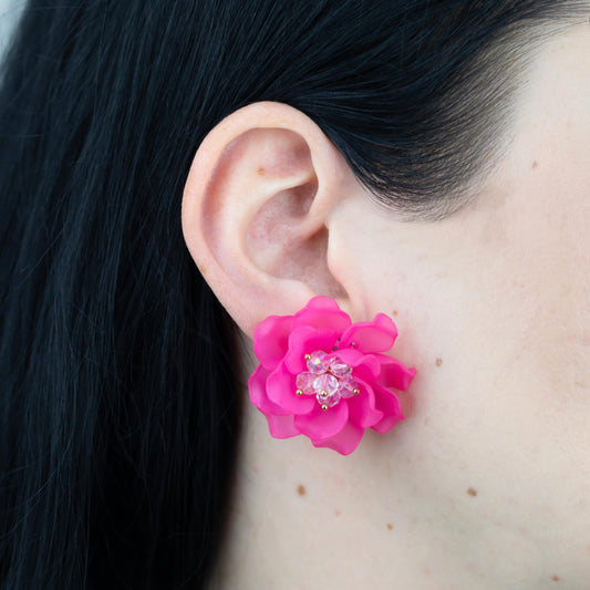 Cercei foarte faini cu petale mari siliconate și accent auriu - Fucsia