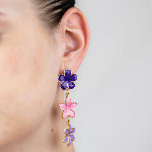 Cercei lungi cu flori delicioase și textură glossy - Suav Mix