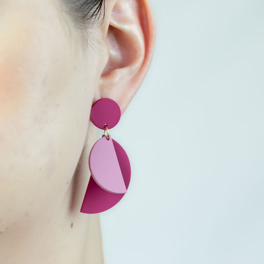 Cercei cu solzi siliconați și accent auriu - Fucsia
