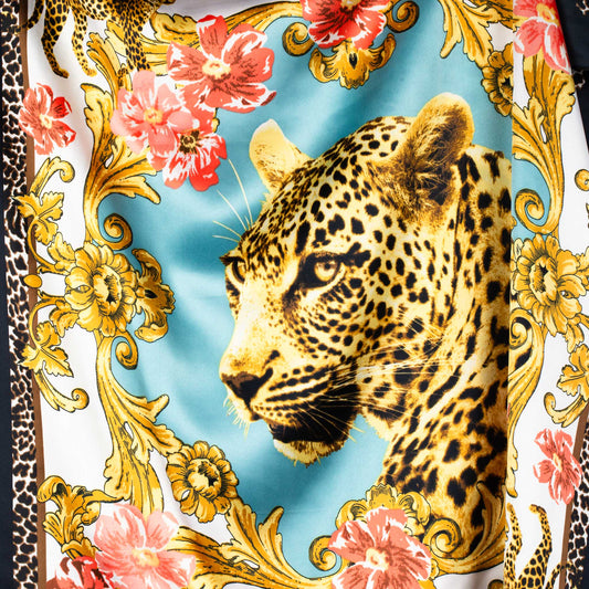 Eșarfă damă din satin cu imprimeu leopard portret, 70 x 70 cm - Wild Vibes