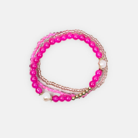 Set brățări elastice diversity cu mărgele și biluțe, 3 buc - Roz
