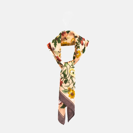 Eșarfă damă din satin cu imprimeu floral, 70 x 70 cm - Crem, Multicolor
