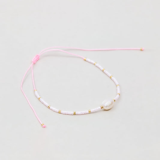 Colier la baza gâtului cu mărgele mici și perlă - Roz