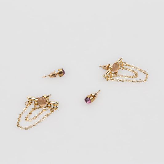 Cercei aurii cu lănțișor, piatră și accent color, set 2 perechi - Roz