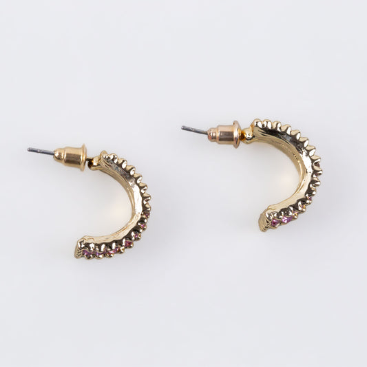 Cercei aurii semirotunzi cu ștrasuri delicate - Roz Deschis