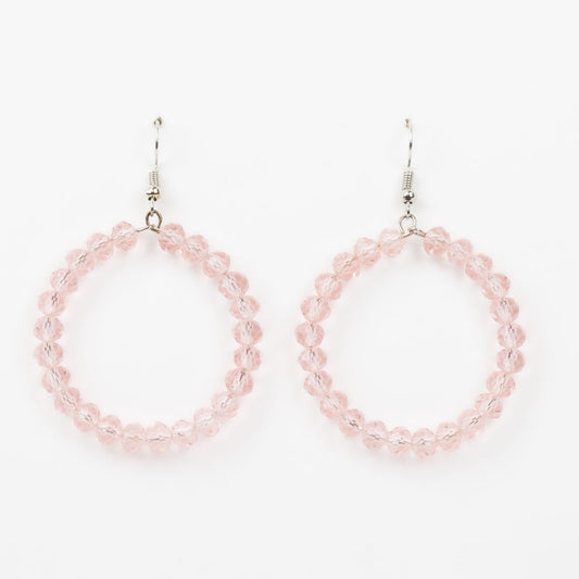 Cercei cu formă rotundă și pietre mari colorate - Roz