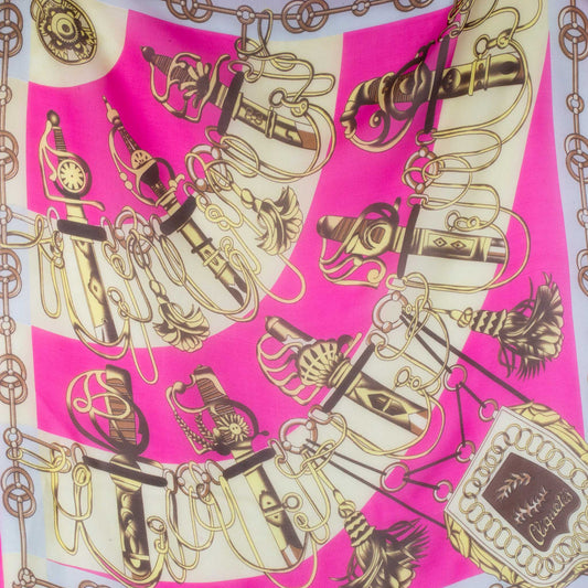 Eșarfă fină cu efect de mătase, imprimeu medieval, 65 x 65 cm - Roz