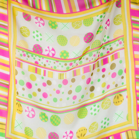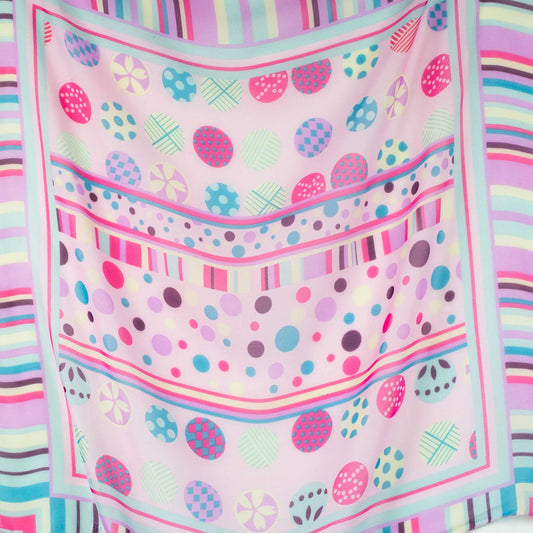 Eșarfă fină cu efect de mătase, imprimeu cu buline abstracte și dungi, 65 x 65 cm - Pink Vibes