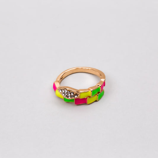 Inel reglabil în formă de șarpe colorat cu ștrasuri - Auriu