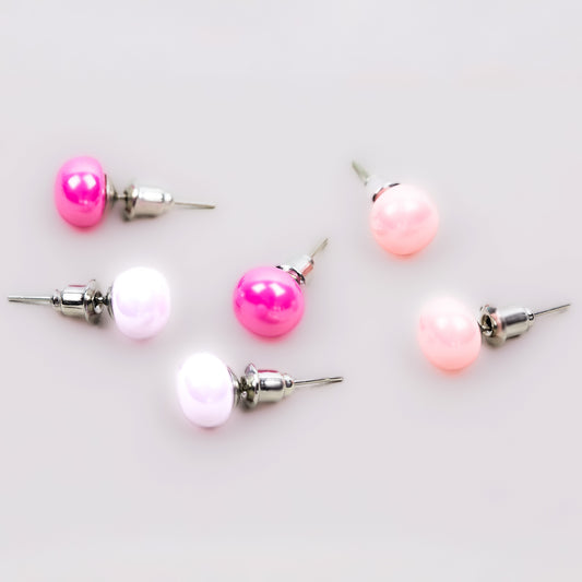 Set cercei mici cu perle colorate în nuanțe, 3 perechi - Roz Mix